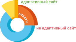 Показатель отказов на мобильных устройствах уменьшается, что повышает статус сайта при ранжировании в поисковых системах. Как правило, после адаптации конверсия сайта увеличивается до 51% и выше!