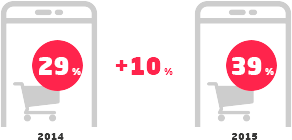 Исследование PayPal: в 2015-м году доля покупок "на ходу" с мобильных устройств выросла до 39% (в сравнении с 29% в 2014-м году) Рост + 10% в год!