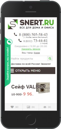 Меню, как главное, так и остальные (каталог товаров и т.д.) размещаются на панелях, которые скрываются и вызываются нажатием на соответствующий значок или кнопку вверху экрана. Экран мобильного устройства остается свободным для показа основной информации и при этом остается возможность быстрого доступа к навигации сайта.